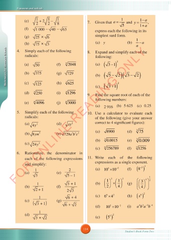 5. Simplify each of the following 10. Use a calculator to evaluate each