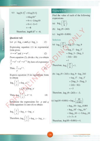 Mathematics for Secondary Schools Quotient rule and q = log y. (1) (c) log(10 0.001) 27 9 = log 27 log 9 3