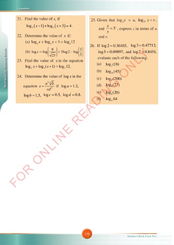 21. Find the value of x, if 25. Given that log x = u, log y = ,