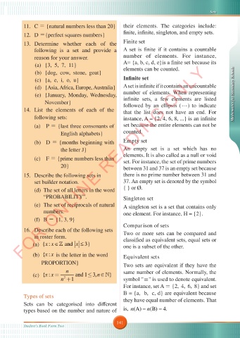 12. D {perfect squares numbers} finite, infinite, singleton, and empty sets.