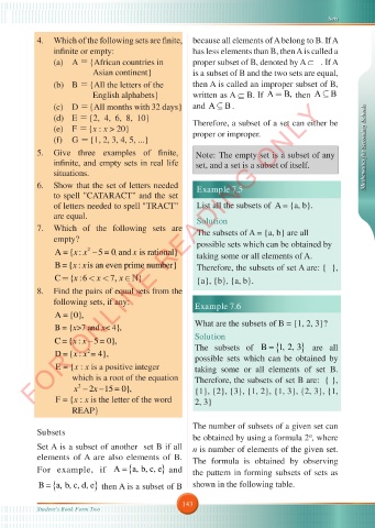 5. Give three examples of finite, Note: The empty set is a subset of any Mathematics for Secondary Schools