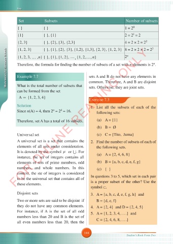 Mathematics for Secondary Schools Therefore, the formula for finding the number of subsets of a set with n elements is 2 .