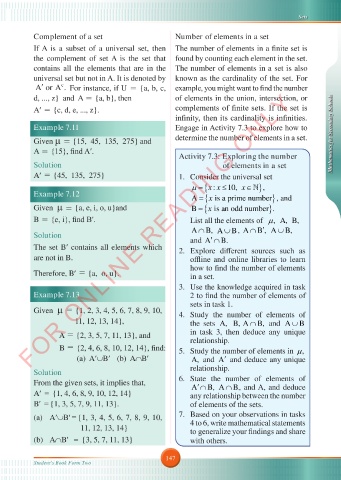 Complement of a set Number of elements in a set