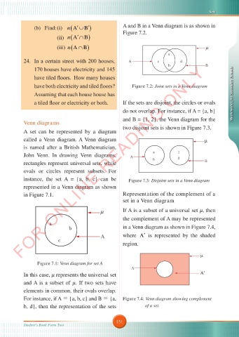 For instance, if A {a, b, c} and B {a, Figure 7�4: Venn diagram showing complement