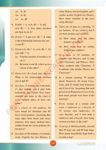 Mathematics for Secondary Schools 10. If n(A) = 8 and n(A∩B) = 8, what (a) How many men are either