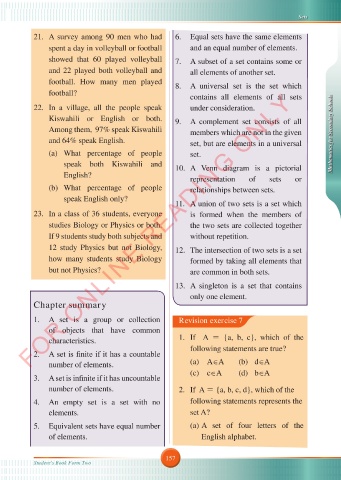 Kiswahili or English or both. 9. A complement set consists of all