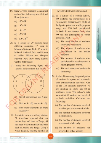 19. Draw a Venn diagram to represent travellers that were interviewed.
