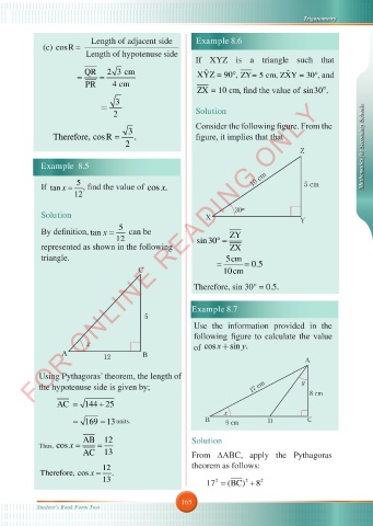 (c) cosR = QR = 2 3 cm XYZ = 90 ,° ZY= 5 cm, ZXY = 30 and ZX = 10 cm.°, and