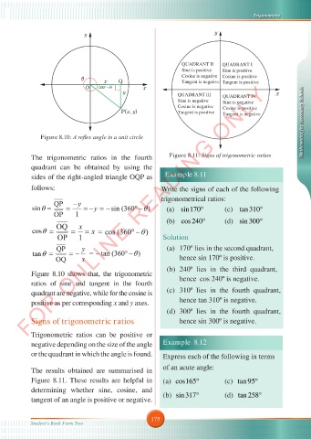 The trigonometric ratios in the fourth Figure 8�11: Signs of trigonometric ratios
