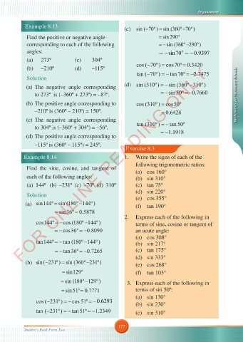 to 273º is (–360º + 273º) = –87º. = - sin (360º 310 )º - = sin50º - = - 0.7660 Mathematics for Secondary Schools