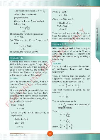 (b) With y = 3xz, if x = 5 and z = 6, hours, and 48 minutes to bake 300 cakes. Mathematics for Secondary Schools