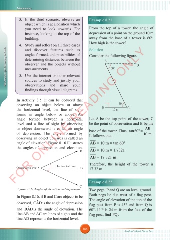 Figure 8�16: Angles of elevation and depression Two pegs, P and Q are on level ground.