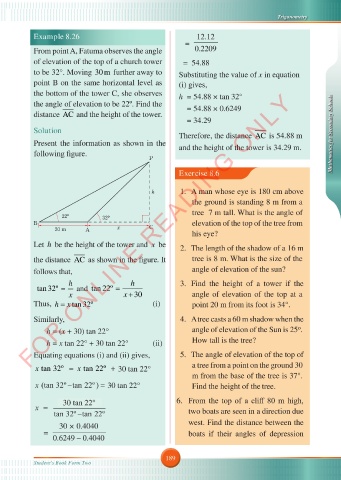 h = (x + 30) tan 22° angle of elevation of the Sun is 25 .