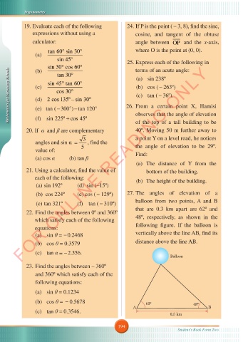 (b) cos 224º (e) cos ( – 129º) 27. The angles of elevation of a