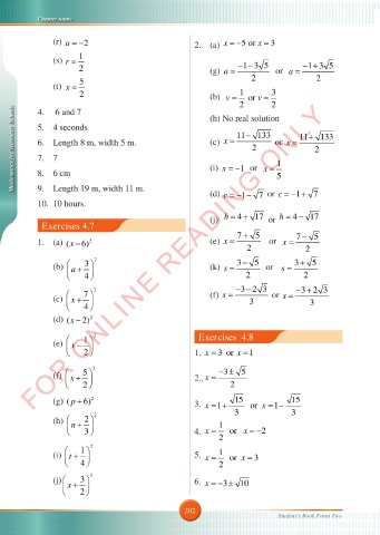 Mathematics for Secondary Schools 5. 4 seconds (c) x = 11− 2 133 or x = 11+ 2 133
