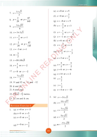 1. (a) x = 0 or x = − 3 (c) x = 7 ± 21