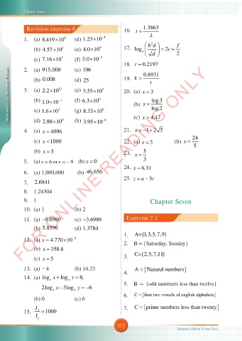Mathematics for Secondary Schools 3. (a) 2.2 10× 2 12 1 (d) 25 0 5 0 20. (a) x = t 3 log3