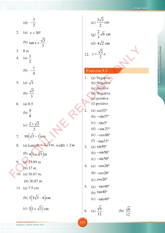 8. (a) Length 2 3 m,= width 2m= 3. (a) sin50°
