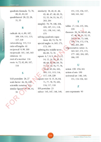 Mathematics for Secondary Schools rationalising 113, 114 solving quadratic equa- 47, 48, 49, 51, 52, 53,