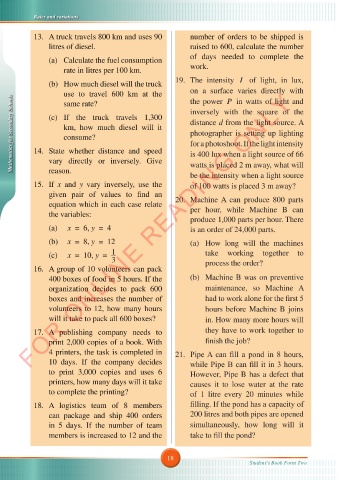 Mathematics for Secondary Schools 14. State whether distance and speed distance d from the light source. A