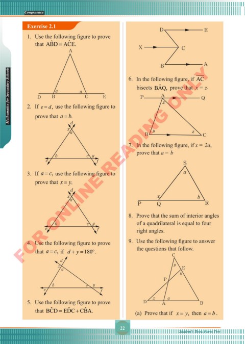 Mathematics for Secondary Schools 2. If e = , d use the following figure to 6. In the following figure, if AC