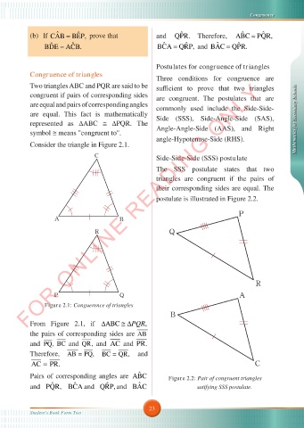 From Figure 2.1, if ∆ ABC ≅∆ PQR ,