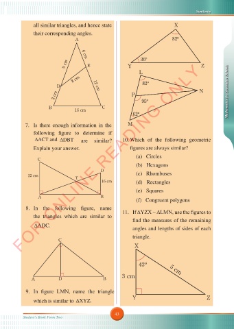 8. In the following figure, name 11. If ΔYZX ~ ΔLMN, use the figures to