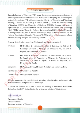 Tanzania Institute of Education (TIE) would like to acknowledge the contributions of