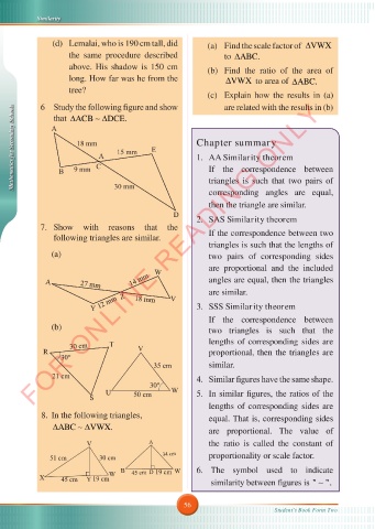 (d) Lemalai, who is 190 cm tall, did (a) Find the scale factor of VWX∆
