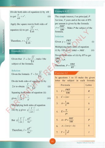 Mathematics for Secondary Schools Therefore, r = p h . Solution PRT . (i)