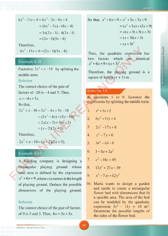 So that, 6x 2 11x - += (6x= 2 2 3x - 3 ) (8x - x - 8x - + 4 - 4) So that, x + 2 6x + 9 = x + 2 3x + 3x + 9
