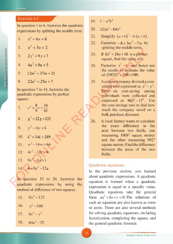 Mathematics for Secondary Schools 4. 12m + 4u + 2 2 9u + 37m + 5 21 24. Factorize x 2 2 y - 2 and hence use