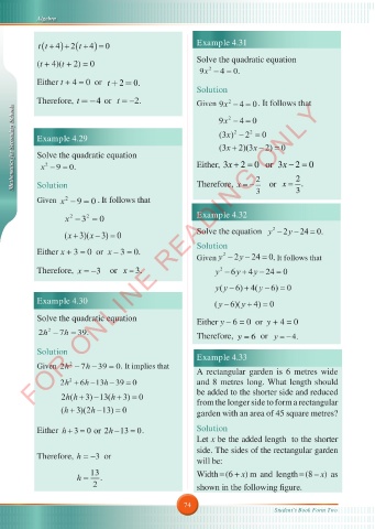 Therefore, x = - 3 or x = 3. y y y y 2 2 2 2 2y - 6y - 6y - 6y - - 24 = - 24 0 (splitting the middleterm)