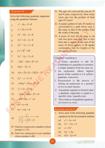 1. x − 4x += 22. A square garden of side 20 metres is