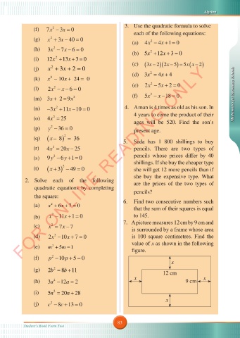 (m) 3x + 29x= 2 (f) 5x −− 18 0= Mathematics for Secondary Schools