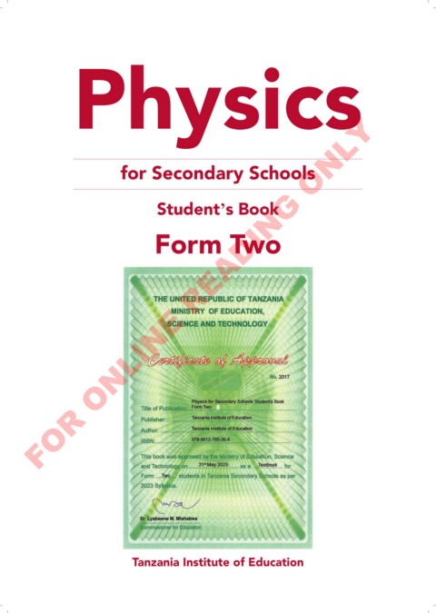 Physics FOR ONLINE READING ONLY for Secondary Schools Student’s Book Form Two Tanzania Institute of Education Physics Form 2 Final.indd 1 25/10/2025 10:25