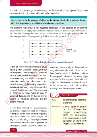 Magnetisation is the process of aligning the atomic dipoles in a material in one