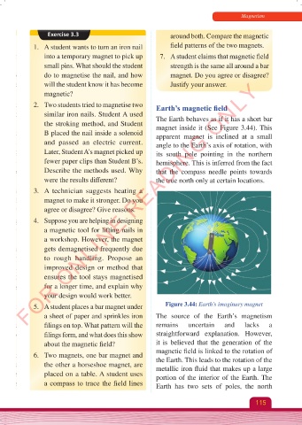 5. A student places a bar magnet under Figure 3.44: Earth’s imaginary magnet