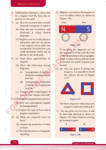 6. Differentiate between a force due 11. Suppose you mount a bar magnet on