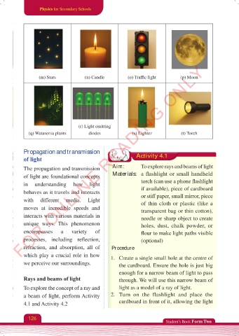 a beam of light, perform Activity 2. Turn on the flashlight and place the