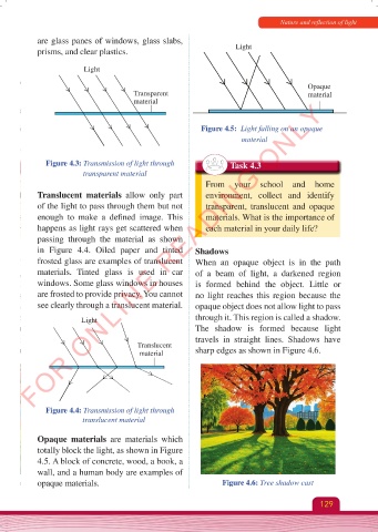 of the light to pass through them but not transparent, translucent and opaque