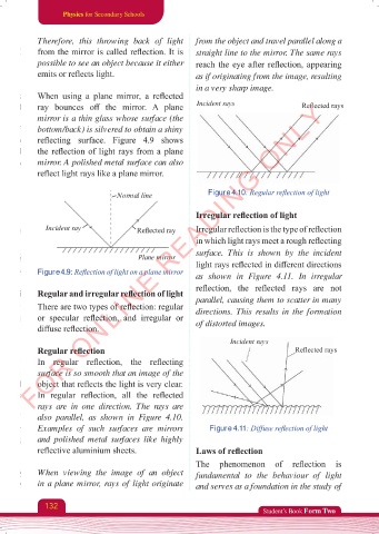 Figure 4.9: Reflection of light on a plane mirror as shown in Figure 4.11. In irregular
