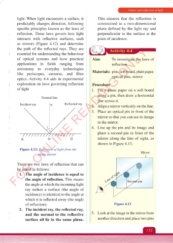 optics. Activity 4.4 aids in experimental optical pins, mirror