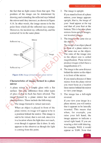1. The image formed is virtual (not real). plane mirror, you will notice