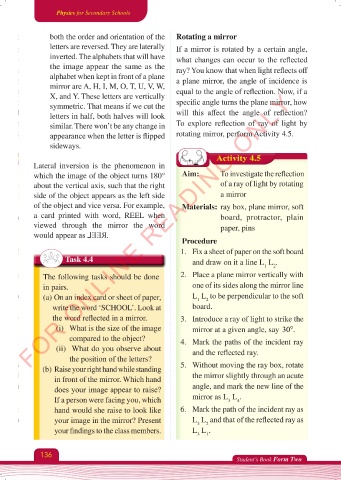 letters are reversed. They are laterally If a mirror is rotated by a certain angle,