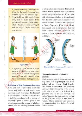 5. A girl in Figure 4.19 stands 80 cm side of the curved glass is silvered such