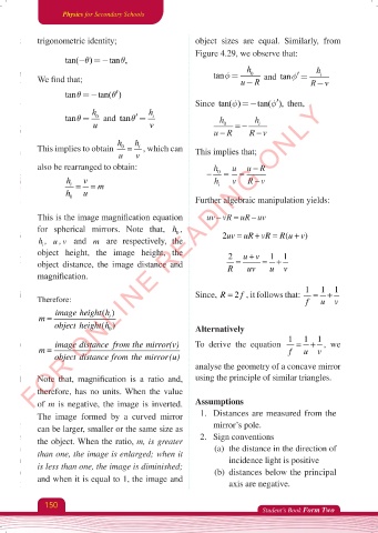for spherical mirrors. Note that, h ,
