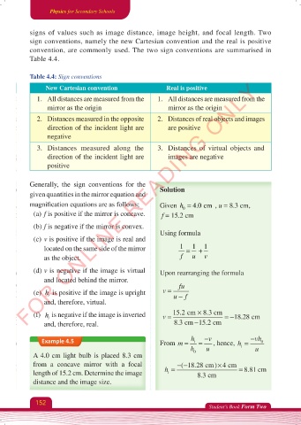 signs of values such as image distance, image height, and focal length. Two