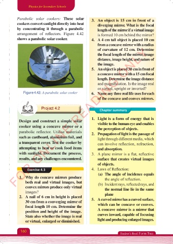 shows a parabolic solar cooker. 4. A 4 cm tall object is placed 10 cm