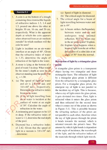 1. A coin is at the bottom of a trough (b) The critical angle for diamond.